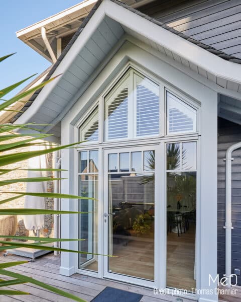 À l’extérieur, le capotage en aluminium protège le bois des intempéries, des UV et de l’humidité du climat landais. Ce duo de matériaux combine ainsi la chaleur et la performance thermique du bois avec la durabilité et l’absence d’entretien de l’aluminium, en faisant le choix le plus pérenne.