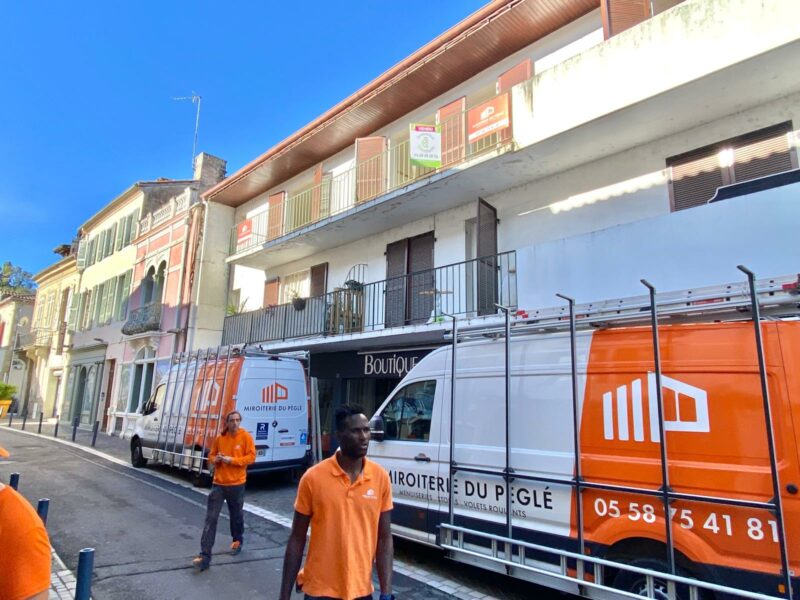La Miroiterie du Pègle vient de réaliser un chantier d’envergure au cœur d’Aire-sur-l’Adour : la rénovation globale d’un immeuble ancien, avec un travail centré sur la menuiserie PVC et l’installation de volets roulants Bubendorff à lames faible émissivité.